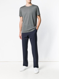 plain tailored trousers Navy blue virgin wool plain tailored trousers from Theory featuring a mid rise, a concealed front fastening, a straight leg, side pockets and back pockets. Imported Composition Virgin Wool 97%, Spandex/Elastane 3% SIZE & FIT Model measurements Height 6 ft 1 in(1.86 m) Bust/Chest 35.43 in(90 cm) Hips 35.43 in(90 cm) Waist 29.92 in(76 cm) Washing instructions Dry Clean Only