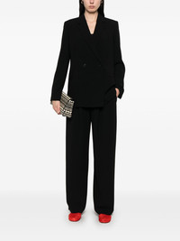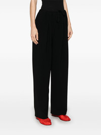 pleat-detailed trousers Highlights - Black - Elasticated drawstring waistband - Two side slit pockets - Two rear flap pockets Imported Composition Outer: Triacetate 70%, Polyester 30% Lining: Polyester 100% SIZE & FIT Model measurements Height 5 ft 10 in(1.78 m) Bust/Chest 33.46 in(85 cm) Hips 36.22 in(92 cm) Waist 23.22 in(59 cm) FittingInformation Designed with a wide-leg cut, these trousers allow for a close fit at the waist and offer a loose and roomy fit over the leg The elasticated waist allows for a comfortable fit Made from a midweight non-stretch fabric, this piece offers minimal elasticity when worn Washing instructions Machine Wash
