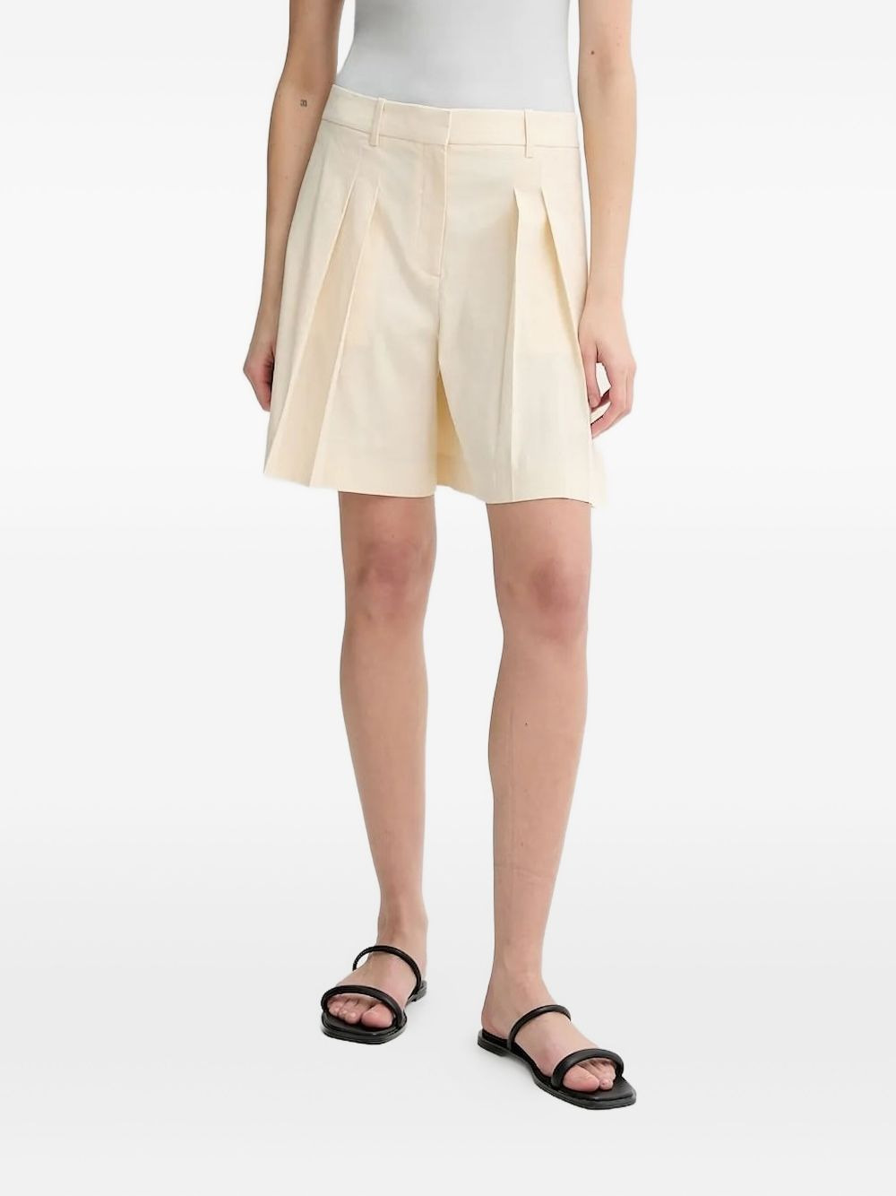 pleated-front tailored shorts Highlights - Off-white - Pleated front - Button fly - Welt pockets - Straight hem Imported Composition Outer: Linen/Flax 62%, Viscose 36%, Elastane 2% Lining: Polyester 100% Washing instructions Read Manufacturer Guidelines