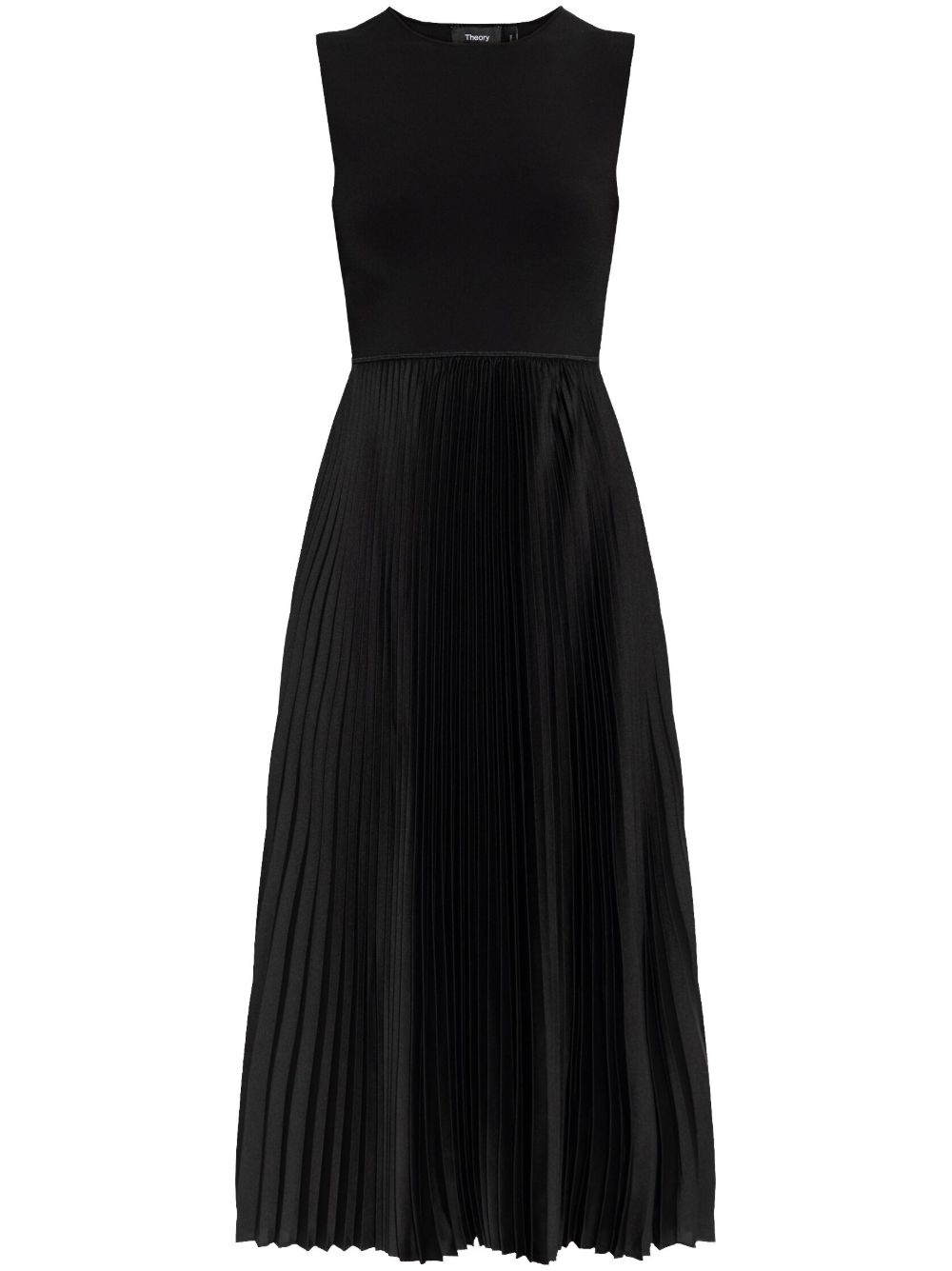 pleated satin dress Highlights - Black - Jersey texture/satin weave - Pleated skirt - Slip-on style - Round neck - Sleeveless - Mid-length Imported Composition Rayon 76%, Nylon 22%, Spandex/Elastane 2% Washing instructions Read Manufacturer Guidelines