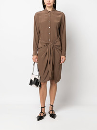 Sarong draped shirtdress Highlights - Chestnut brown - Charmeuse - Spread collar - Front button fastening - Off-centre front knot fastening - Long sleeves - Buttoned cuffs - Draped layered skirt - Asymmetric hem - Knee-length - Unlined Imported Composition Viscose 100% SIZE & FIT Model measurements Height 5 ft 11 in(1.8 m) Bust/Chest 33.07 in(84 cm) Hips 37.4 in(95 cm) Waist 25.19 in(64 cm) FittingInformation Designed for a relaxed fit, this piece allows for comfort and movement when worn The adjustable tie waist gives a more adaptable and personalised fit Made from a lightweight non-stretch fabric This piece fits true to size – take your usual size Washing instructions Dry Clean Only