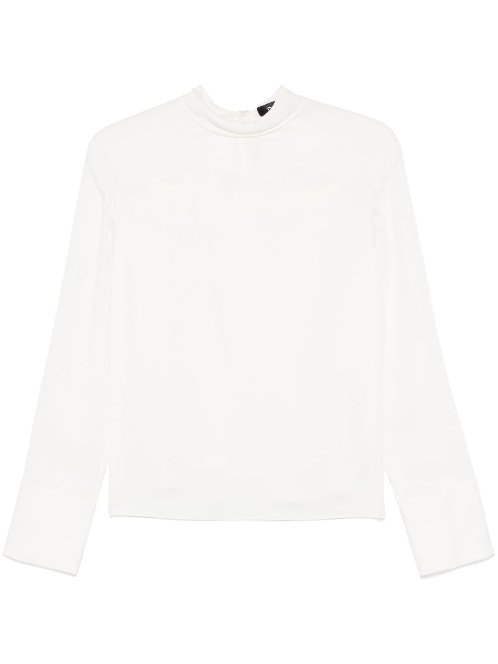 scarf-detail silk blouse Highlights - Ivory white - Silk - Georgette crepe - Attached scarf - Rear hook and eye fastening - High neck - Long sleeves - Buttoned cuffs - Curved hem Imported Composition Silk 100% SIZE & FIT Model measurements Height 5 ft 9 in(1.75 m) Bust/Chest 31.88 in(81 cm) Hips 34.64 in(88 cm) Waist 24.01 in(61 cm) FittingInformation Designed to be unstructured, offering a loose fit throughout Made from a lightweight non-stretch fabric