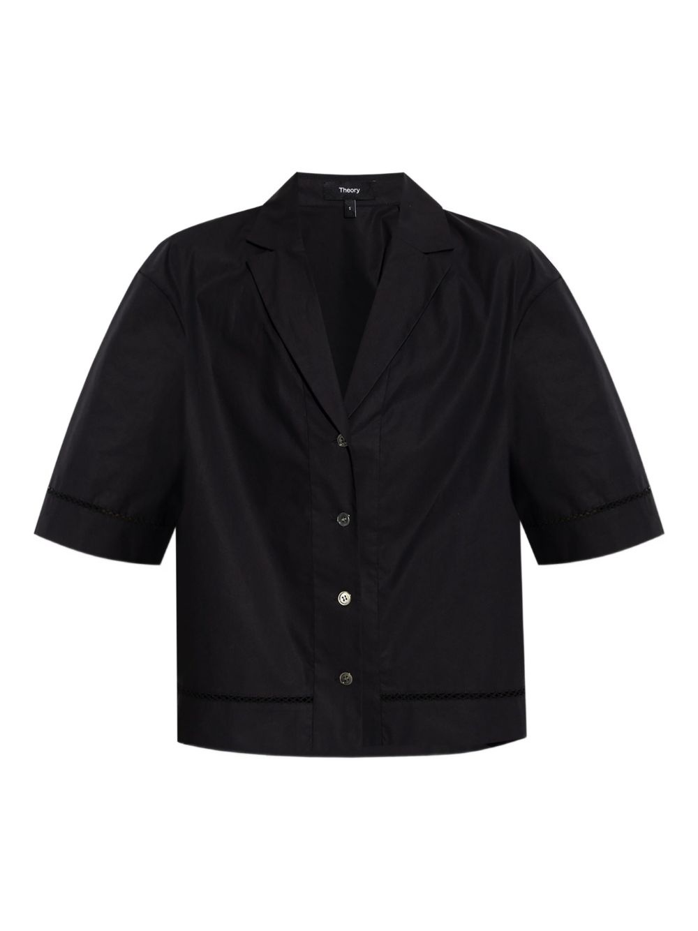 short-sleeve collared shirt Highlights - Black - Collared neckline - Short sleeves - Button fastening - Straight hemline Imported Composition Cotton 96%, Elastane 4% Washing instructions Read Manufacturer Guidelines