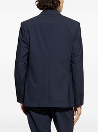 single-breasted blazer Highlights - Navy blue - Button front fastening - Notch lapels - Chest slit pocket - Side flap pockets - Buttoned cuffs Imported Composition Virgin Wool 97%, Lycra 3%