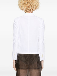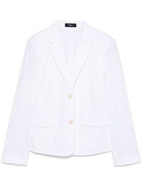 single-breasted blazer Highlights - White - Front button fastening - Two side flap pockets - Buttoned-cuff sleeves - Notched lapels Imported Composition Outer: Linen/Flax 65%, Viscose 31%, Elastane 4% Lining: Polyester 100% SIZE & FIT Model measurements Height 5 ft 9 in(1.75 m) Bust/Chest 34.64 in(88 cm) Hips 36.61 in(93 cm) Waist 26.37 in(67 cm) FittingInformation Designed for a slim fit that sits just away from the body offering a close yet comfortable fit The internal shoulder pads offer a structured shape Made from a midweight non-stretch fabric