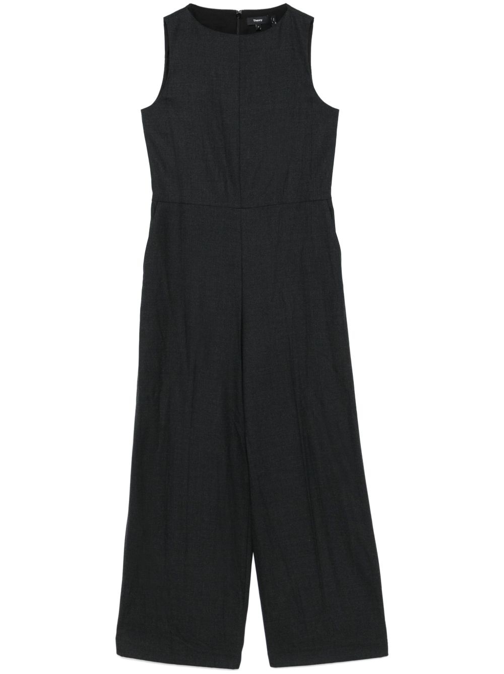 sleeveless jumpsuit Highlights - Charcoal grey - Interlock twill weave - Melange effect - Concealed rear hook and zip fastening - Sleeveless - Two side slit pockets - Dart detailing - Wide leg Imported Composition Outer: Wool 40%, Polyester 29%, Viscose 28%, Spandex/Elastane 3% Lining: Polyester 100%