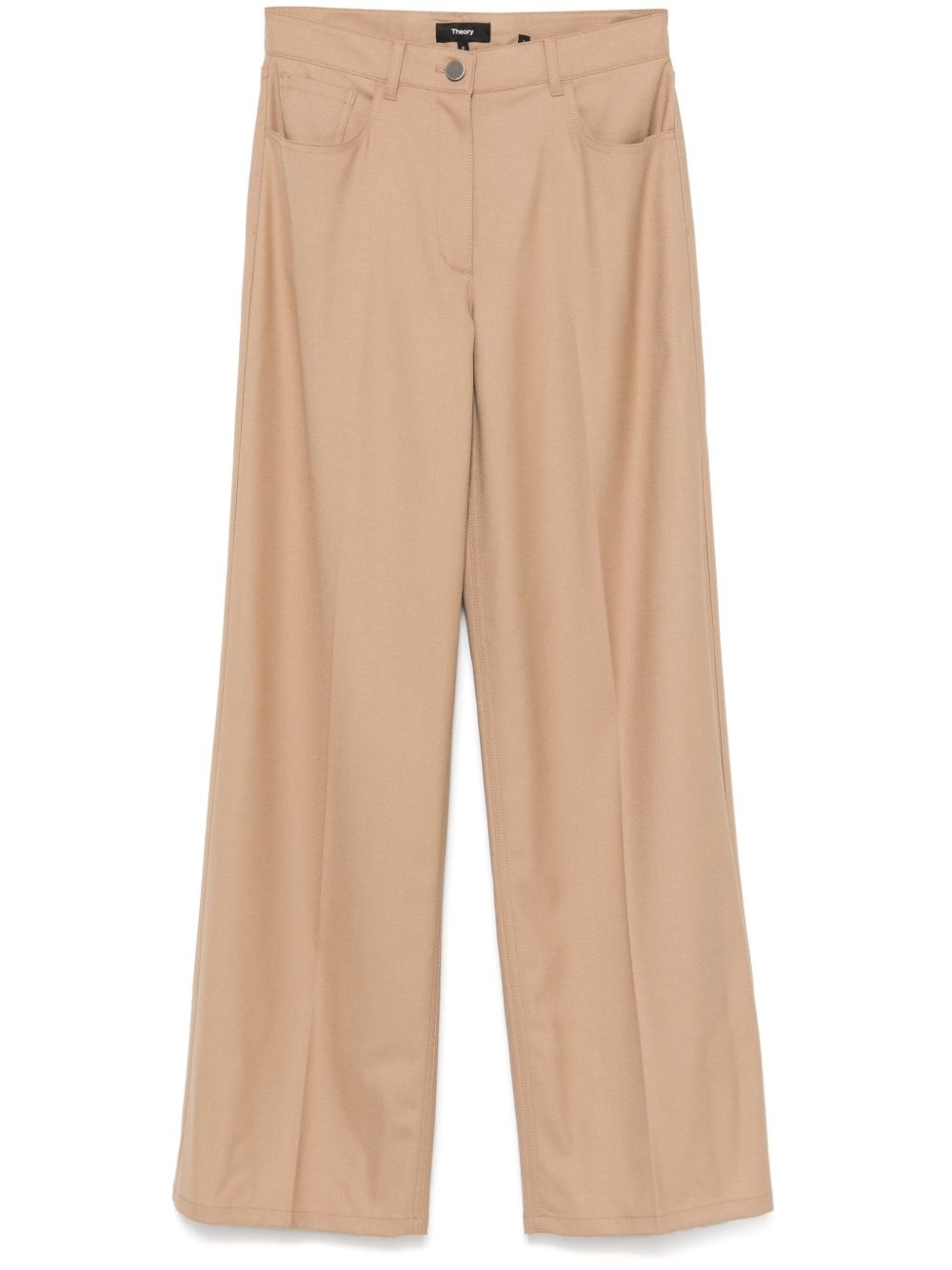 straight-leg trousers Highlights - Camel brown - Interlock twill weave - Straight leg - Concealed fly and button fastening - Mid-rise - Belt loops - Classic five pockets - Pressed crease Imported Composition Outer: Wool 40%, Polyester 29%, Viscose 28%, Spandex/Elastane 3% Lining: Polyester 100% Washing instructions Dry Clean Only