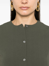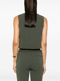 striped crepe vest Highlights - Olive green - Japanese admiral crepe texture - Stripe texture - Crew neck - Sleeveless - Dart detailing - Straight hem - Front button fastening Imported Composition Triacetate 70%, Polyester 30% SIZE & FIT Model measurements Height 5 ft 11 in(1.8 m) Bust/Chest 33.07 in(84 cm) Hips 37.4 in(95 cm) Waist 25.19 in(64 cm) FittingInformation Designed for a relaxed fit, this piece allows for comfort and movement when worn Made from a midweight non-stretch fabric This piece fits true to size – take your usual size