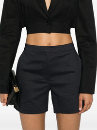 tailored short shorts Highlights - Black - Linen blend - Tailored cut - Two side slash pockets - Thigh-length - Two rear welt pockets - Concealed front button, hook and zip fastening Imported Composition Outer: Linen/Flax 62%, Viscose 36%, Elastane 2% Lining: Cotton 69%, Nylon 27%, Elastane 4% SIZE & FIT Model measurements Height 5 ft 10 in(1.78 m) Bust/Chest 32.67 in(83 cm) Hips 35.43 in(90 cm) Waist 23.22 in(59 cm) FittingInformation Designed for a slim fit that sits just away from the body offering a close yet comfortable fit Made from a midweight stretch fabric, this piece offers elasticity and flexibility when worn This piece fits true to size – take your usual size
