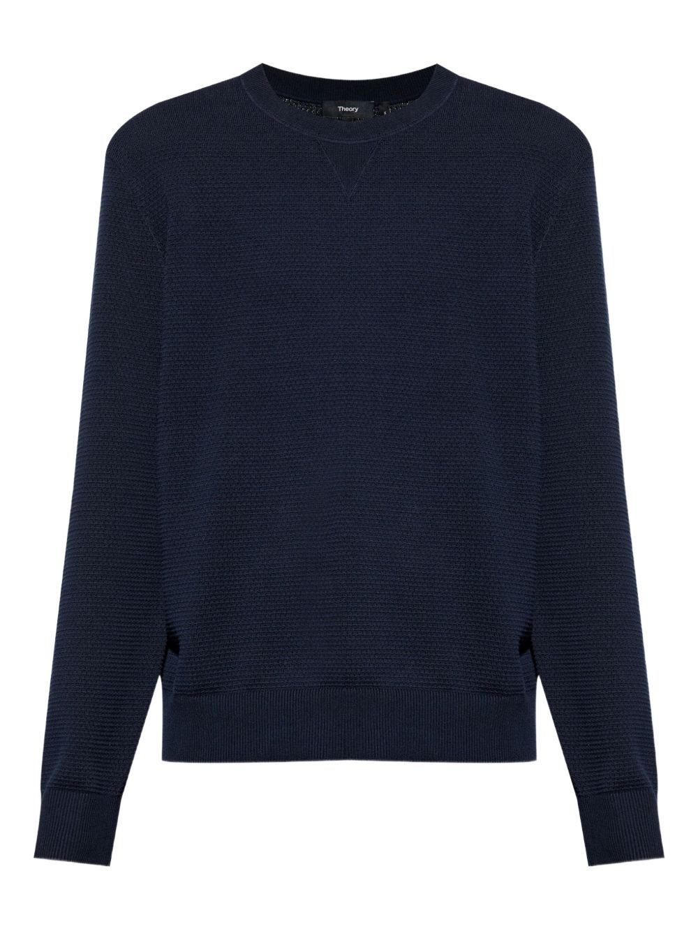 textured crew-neck jumper Highlights - Navy blue - Ribbed detailing - Long sleeves - Crew neckline Imported Composition Cotton 100%