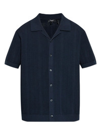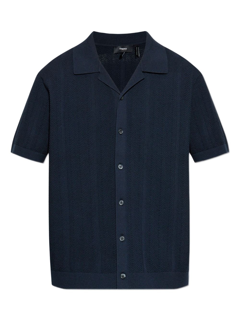 textured short-sleeve cardigan Highlights - Navy blue - Front button fastening - Notch collar - Short sleeves Imported Composition Cotton 68%, Polyester 32%