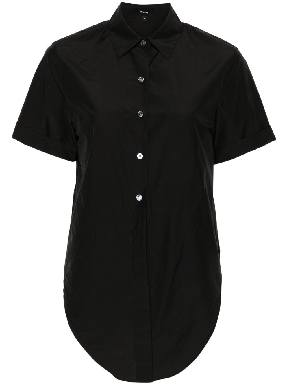 tied shirt Highlights - Black - Cotton blend - Poplin texture - Front tie fastening - Front button fastening - Classic collar - Short sleeves with turn-up cuffs - Box-pleat detail to the back - Cropped Imported Composition Cotton 68%, Recycled Nylon 32% SIZE & FIT Model measurements Height 5 ft 11 in(1.8 m) Bust/Chest 33.07 in(84 cm) Hips 37.4 in(95 cm) Waist 25.19 in(64 cm) FittingInformation Designed for a slim fit that sits just away from the body offering a close yet comfortable fit The tie fastening gives an adaptable and personalised fit Made from a midweight non-stretch fabric