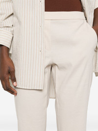 Treeca trousers Highlights - Light beige - Elasticated waistband - Two diagonal pockets to the sides - Rear welt pocket - Pressed crease Imported Composition Outer: Linen/Flax 62%, Viscose 36%, Elastane 2% Lining: Cotton 69%, Nylon 27%, Elastane 4% SIZE & FIT Model measurements Height 5 ft 10 in(1.77 m) Bust/Chest 32.28 in(82 cm) Hips 35.03 in(89 cm) Waist 25.19 in(64 cm) FittingInformation Designed for a slim fit, these trousers offer a close fit at the waist, allowing a comfortable close fit and some movement over the leg The partially elasticated waistband offers increased movement and comfort at the waist Made from a midweight stretch fabric, this piece offers elasticity and flexibility when worn