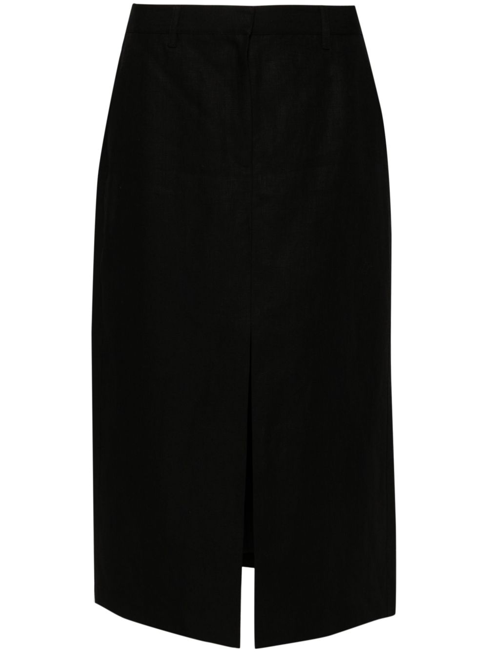 Trouser linen midi skirt Highlights - Black - Two diagonal pockets to the sides - Front slit Imported Composition Lining: Polyester 100% Outer: Linen/Flax 100% SIZE & FIT Model measurements Height 5 ft 10 in(1.77 m) Bust/Chest 33.85 in(86 cm) Hips 37 in(94 cm) Waist 26.37 in(67 cm) FittingInformation This midi-length skirt is intended to be worn high on the waist The vented hem offers movement at the rear Made from a midweight non-stretch fabric This piece fits true to size – take your usual size