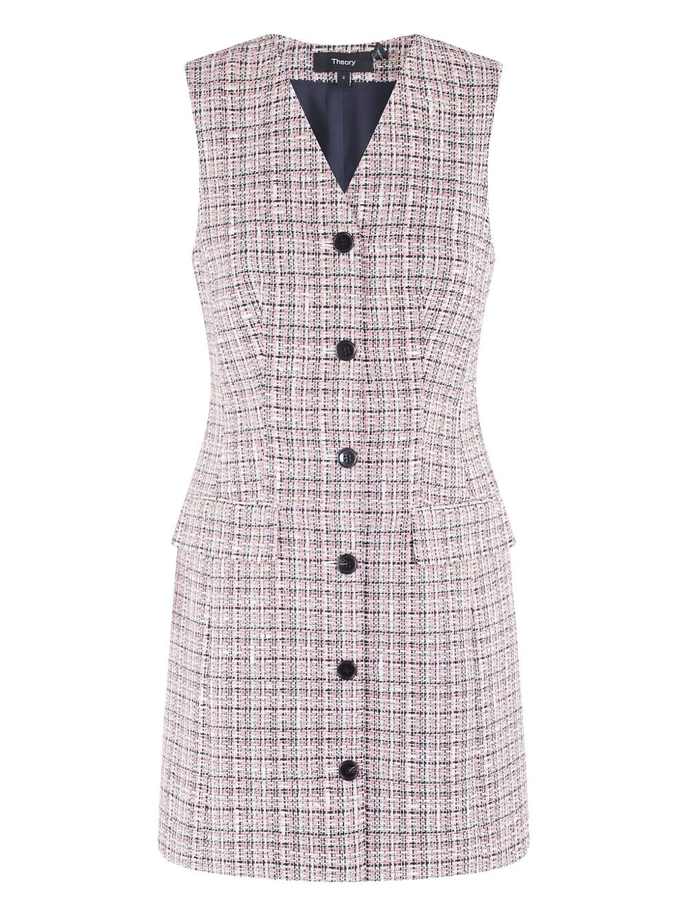 tweed mini dress Highlights - Light pink - Front button fastening - Two front flap pockets - V-neck - Sleeveless Imported Composition Cotton 64%, Polyester 19%, Viscose 15%, other fibers 2%