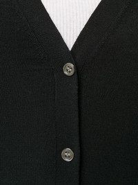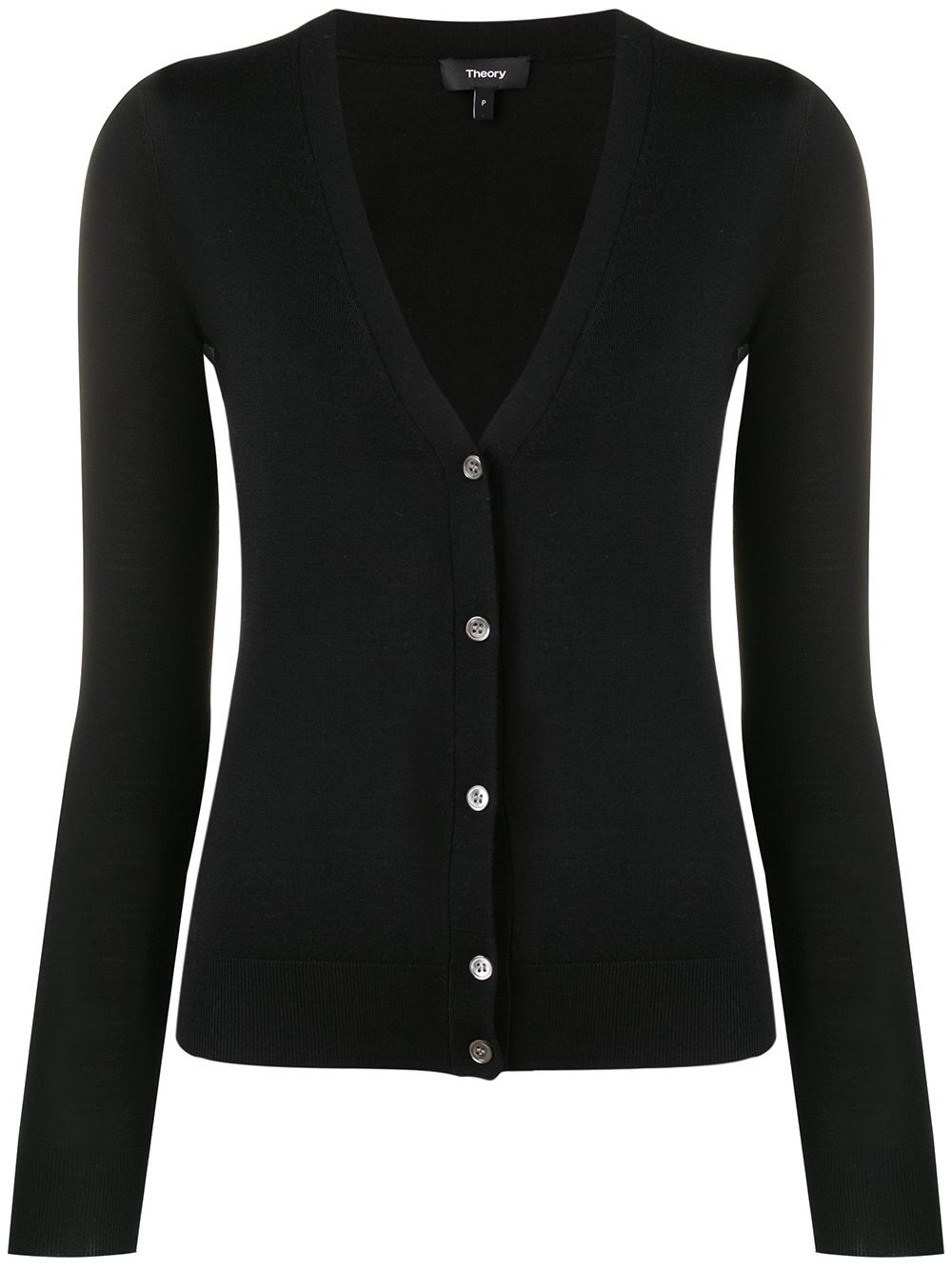 v-neck cardigan Theory exudes versatility with this coveted knitwear staple. Made exclusively from wool with a hint of stretch, it arrives in a sleek black colourway for AW20. Highlights - Black - Wool stretch - V-neck - Long sleeves - Front button fastening - Knitted construction Made in Italy Composition Wool 95%, Other fibres 5% SIZE & FIT Model measurements Height 5 ft 10 in(1.78 m) Bust/Chest 33.07 in(84 cm) Hips 36.61 in(93 cm) Waist 24.8 in(63 cm)
