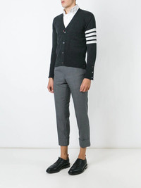 Dark Grey Cashmere 4-Bar Short V-Neck Cardigan