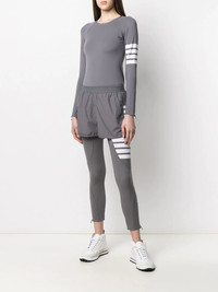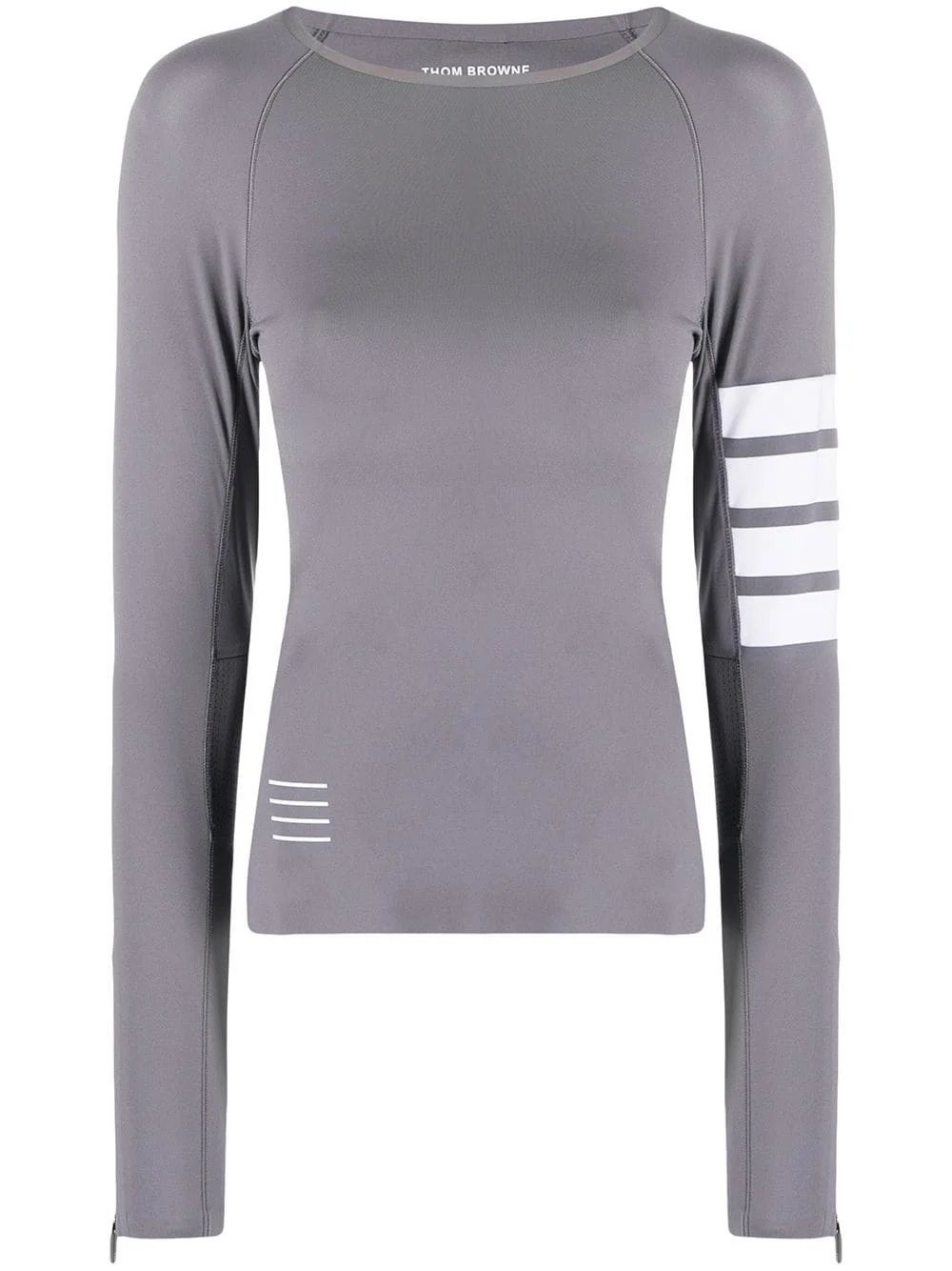 4-Bar compression long-sleeve top Stretch it out in style with this long sleeved compression top from Thom Browne. Designed in a timelessly flattering grey hue, it features the label's signature 4-Bar stripe design. It's going straight to the top of our wist list. Made in Italy Composition Polyamide 85%, Spandex/Elastane 15% SIZE & FIT Model measurements Height 5 ft 10 in(1.79 m) Bust/Chest 32.67 in(83 cm) Hips 35.03 in(89 cm) Waist 24.8 in(63 cm) FittingInformation This piece fits true to size. We recommend you get your regular size Cut for a slim fit Made with a mid-weight stretch fabric Washing instructions Dry Clean Only