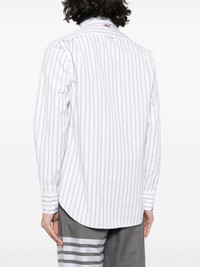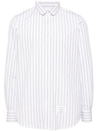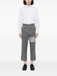 striped shirt Evoking Thom Browne's tailoring craftsmanship, these grey trousers are cut in Italy from a midweight cotton twill that falls to a cropped leg. The brand's instantly recognisable 4-Bar motif adorns the pair's left side. Highlights - Medium grey - Classic collar - Front button fastening - Long sleeves - Buttoned cuffs Made in Italy Composition Cotton 100% SIZE & FIT Model measurements Height 6 ft 2 in(1.87 m) Bust/Chest 33.07 in(84 cm) Hips 35.43 in(90 cm) Waist 26.77 in(68 cm) FittingInformation Designed for a regular fit, allowing for a comfortably loose fit throughout the body Made from a midweight non-stretch fabric This piece fits true to size – take your usual size Washing instructions Dry Clean Only
