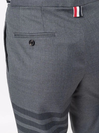 4-Bar cropped trousers Mirroring the clean lines and signature house codes of the American brand, these cropped wool-blend trousers are presented as part of Thom Browne's AW21 collection. Detailed with the house's RWB grosgrain loop and 4-Bar motif, the pair brings fashion knowledge to the scene. Made in Italy Composition Lining: Cupro 100% Outer: Polyester 50%, Wool 50% Washing instructions Read Manufacturer Guidelines