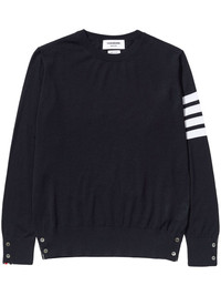 4-Bar wool jumper Highlights - Navy blue - Wool - Navy blue - Wool - Fine knit - Signature 4-bar stripe - Signature grosgrain loop tab - Ribbed trim - Crew neck - Long sleeves - Buttoned cuffs - Straight hem Made in Italy Composition Mohair 100%, Wool 100% SIZE & FIT Model measurements Height 6 ft 2 in(1.89 m) Bust/Chest 36.22 in(92 cm) Hips 35.82 in(91 cm) Waist 28.74 in(73 cm) Measurement CHEST 35.98 in(91.4 cm) LENGTH 22.99 in(58.4 cm) WAIST 34.01 in(86.4 cm) SLEEVE LENGTH 17.99 in(45.7 cm) Washing instructions Dry Clean Only