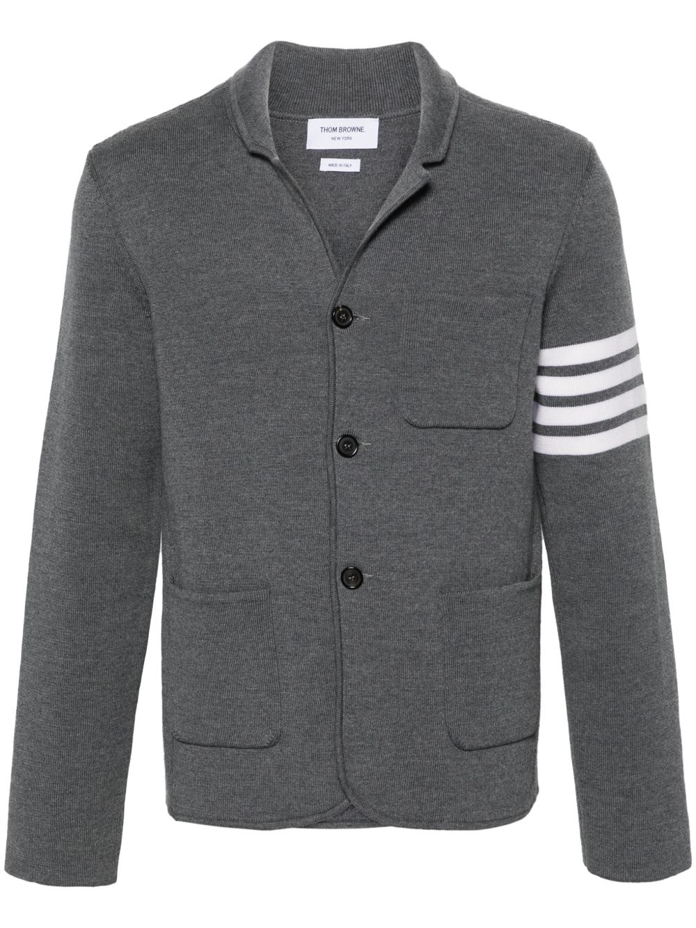4-Bar knit blazer Highlights - Medium grey - Virgin wool blend - Knitted construction - Notched collar - Long sleeves - Stripe detailing - Chest patch pocket - Two side patch pockets - English rear vents - Internal logo tag - Curved hem - Front button fastening Imported Composition Merino 99%, Nylon 1% SIZE & FIT Model measurements Height 6 ft 1 in(1.85 m) Bust/Chest 36.22 in(92 cm) Hips 36.22 in(92 cm) Waist 27.55 in(70 cm) FittingInformation Designed for a slim fit, offering a comfortable fit that sits just away from the body Made with a midweight knit, this piece offers some stretch Measurement CHEST 42 in(106.7 cm) LENGTH 25.51 in(64.8 cm) WAIST 42 in(106.7 cm) SLEEVE LENGTH 25.98 in(66 cm)