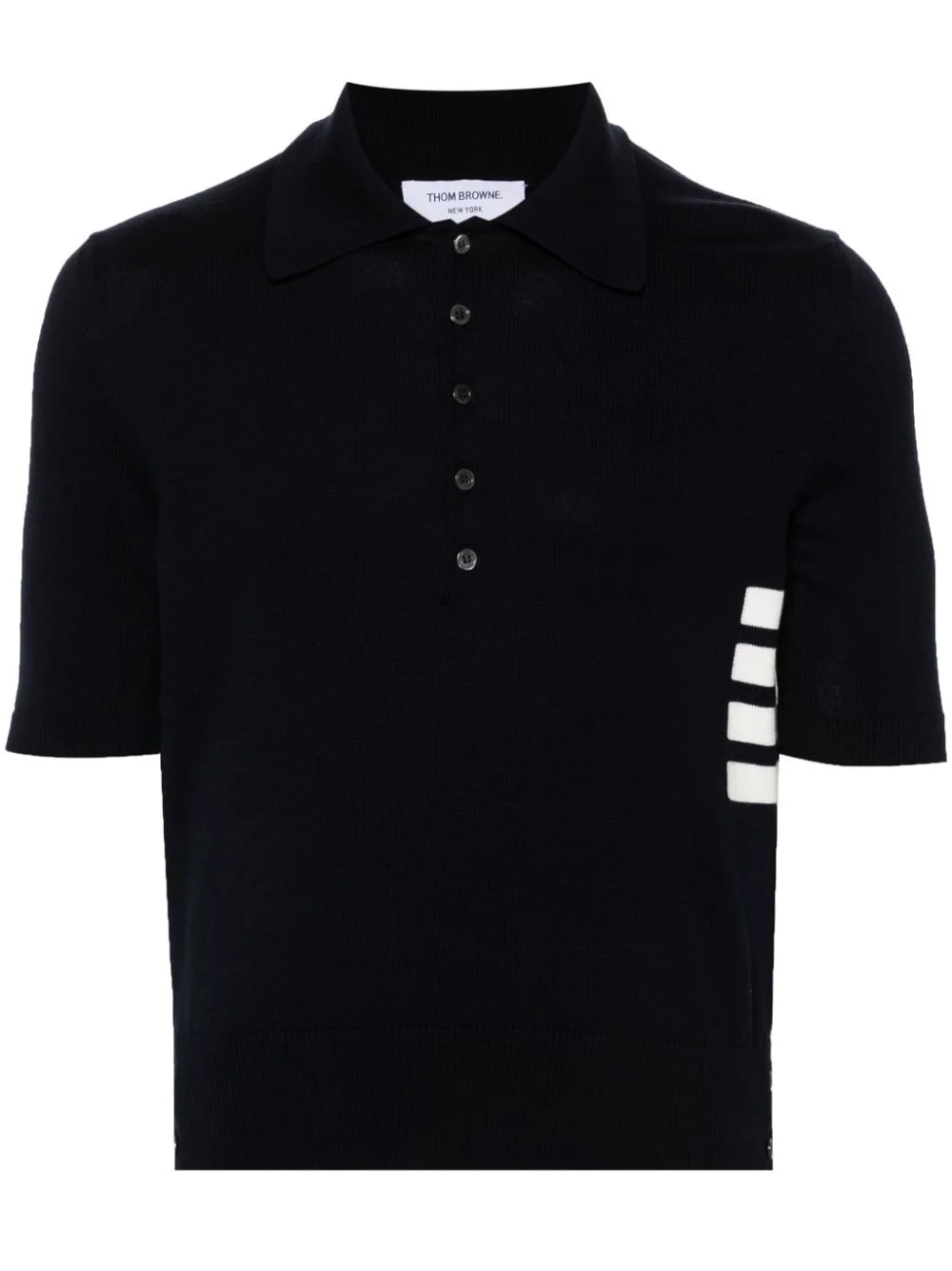 4-Bar knitted polo shirt Highlights - Navy blue - Cotton - Knitted construction - Polo collar - Signature 4-bar stripe - Signature grosgrain loop tab - Short sleeves - Ribbed cuffs and hem - Short front button fastening Made in Italy Composition Cotton 100% SIZE & FIT Model measurements Height 6 ft 1 in(1.86 m) Bust/Chest 37.4 in(95 cm) Hips 36.22 in(92 cm) Waist 29.52 in(75 cm) FittingInformation Designed for a slim fit, this polo shirt offers a comfortable fit that sits just away from the body The ribbed hem offers a close, comfortable fit Made from a midweight non-stretch fabric, this piece offers minimal elasticity when worn This piece fits true to size – take your usual size