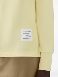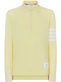 4-Bar long-sleeve polo shirt Elevated by Thom Browne's signature 4-Bar stripe detail at the sleeve, this light-yellow polo shirt is crafted from pique cotton for a lightly textured finish. A logo patch completes the casual design. Made in Italy Composition Cotton 100% SIZE & FIT FittingInformation Designed for a relaxed fit, this polo shirt offers comfort and movement Made from a midweight non-stretch fabric, this piece offers minimal elasticity when worn