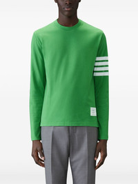 4-Bar long-sleeve T-shirt Elevated by Thom Browne's signature 4-Bar stripe detail at the sleeve, this green long-sleeved T-shirt is crafted from cotton-jersey for a soft handle and natural stretch. A logo patch completes the casual design. Made in Italy Composition Cotton 100%