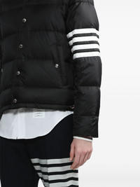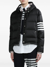 4-Bar hooded puffer jacket Highlights - Black/white - Wool - Feather down - Padded design - Signature 4-bar stripe - Classic hood - Front press-stud fastening - Long sleeves - Slip pockets to the sides - Straight hem Made in Italy Composition Lining: Feather Down 100%, Polyester 100% Outer: Polyamide 100%, Wool 100% SIZE & FIT Measurement CHEST 45.66 in(116 cm) WAIST 43.3 in(110 cm) SLEEVE LENGTH 36.22 in(92 cm) Shoulder Width 19.68 in(50 cm) Washing instructions Dry Clean Only