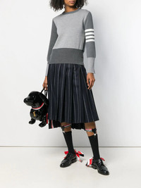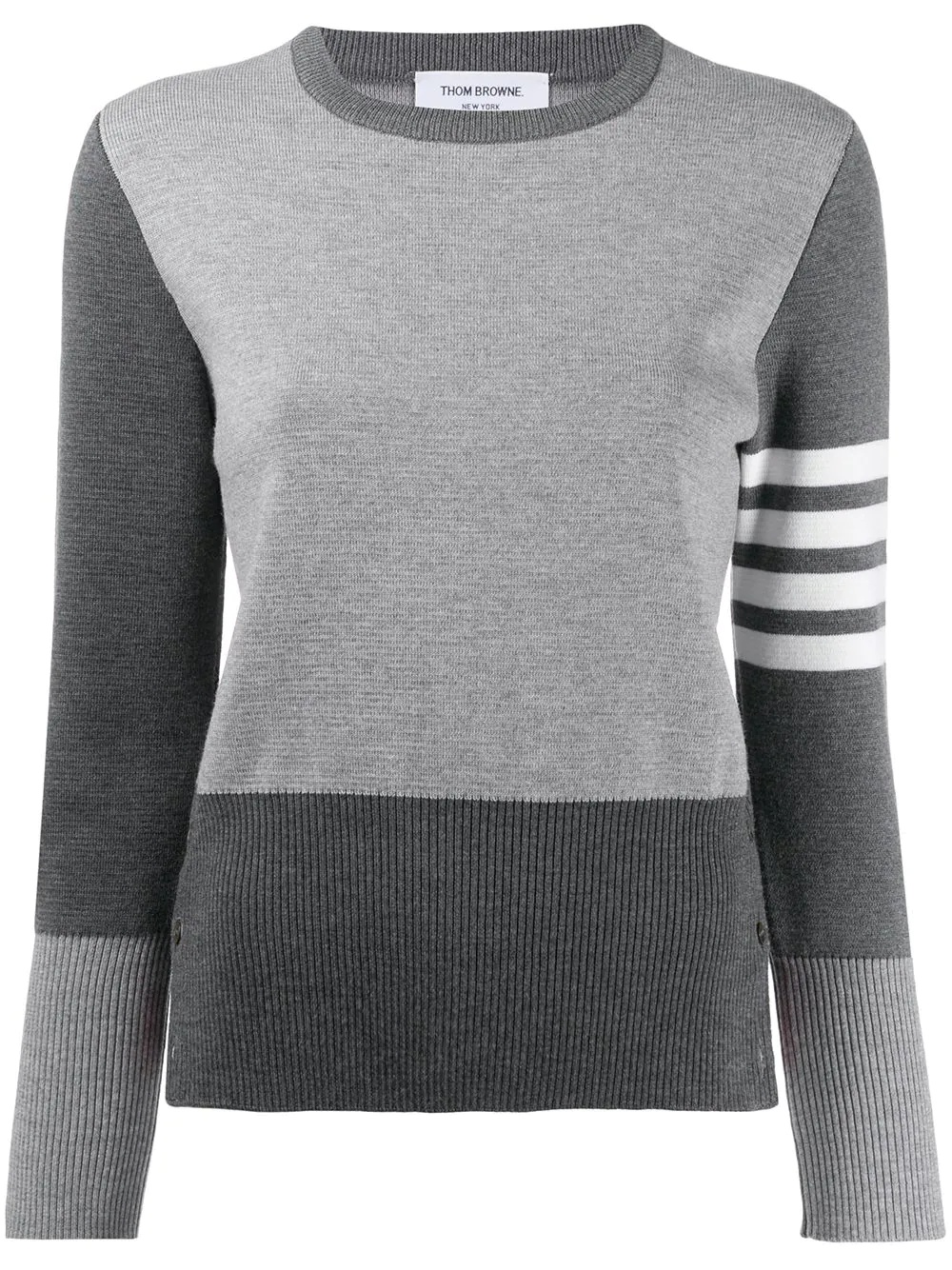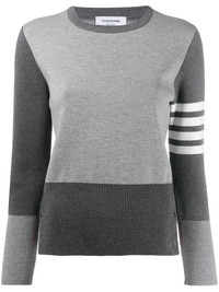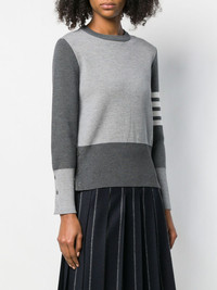 4-Bar Milano stitch jumper Try out some softer tones. This Thom Browne Fun Mix Milano stitch jumper will keep you feeling cosy and looking perfectly put together. What more could you want? Featuring a ribbed crew neck, long sleeves, a side button fastening, contrasting panels, button cuffs, a ribbed hem and cuffs, a signature grosgrain loop tab, a 4-Bar stripe and RWB details. Made in Italy Composition Merino 100% SIZE & FIT Model measurements Height 5 ft 11 in(1.8 m) Bust/Chest 31.49 in(80 cm) Hips 35.82 in(91 cm) Waist 24.8 in(63 cm) Washing instructions Dry Clean Only