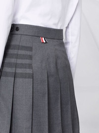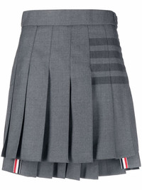 4-Bar pleated mini skirt Known for playing with collegiate undertones, Thom Browne presents this grey mini skirt. In an asymmetric construction, this piece features the instantly recognisable 4-Bar stripe to the front. Made in Italy Composition Lining: Cupro 100% Outer: Polyester 50%, Wool 50%