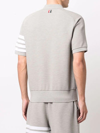 4-Bar polo shirt A classic with a Thom Browne twist. Crafted from a cotton blend, this grey polo shirt comes with the usual grosgrain loop tab at the rear, a logo tag at the front and the iconic 4-Bar stripe at the sleeve. Made in Italy Composition Cotton 100% SIZE & FIT FittingInformation This piece fits true to size. We recommend you get your regular size Cut for a relaxed fit Made with a mid-weight fabric Washing instructions Read Manufacturer Guidelines