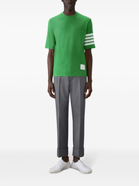 4-Bar round-neck T-shirt Crafted from soft cotton, this round-neck T-shirt from Thom Browne is decorated with the brand's signature 4-Bar stripe in white, constrasting against the piece's bright green background. Made in Italy Composition Cotton 100% SIZE & FIT FittingInformation Designed for a slim fit, offering a comfortable fit that sits just away from the body Made from a midweight non-stretch fabric, this piece offers minimal elasticity when worn
