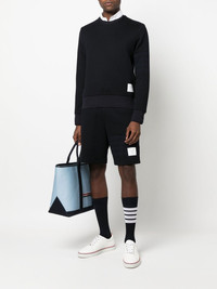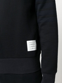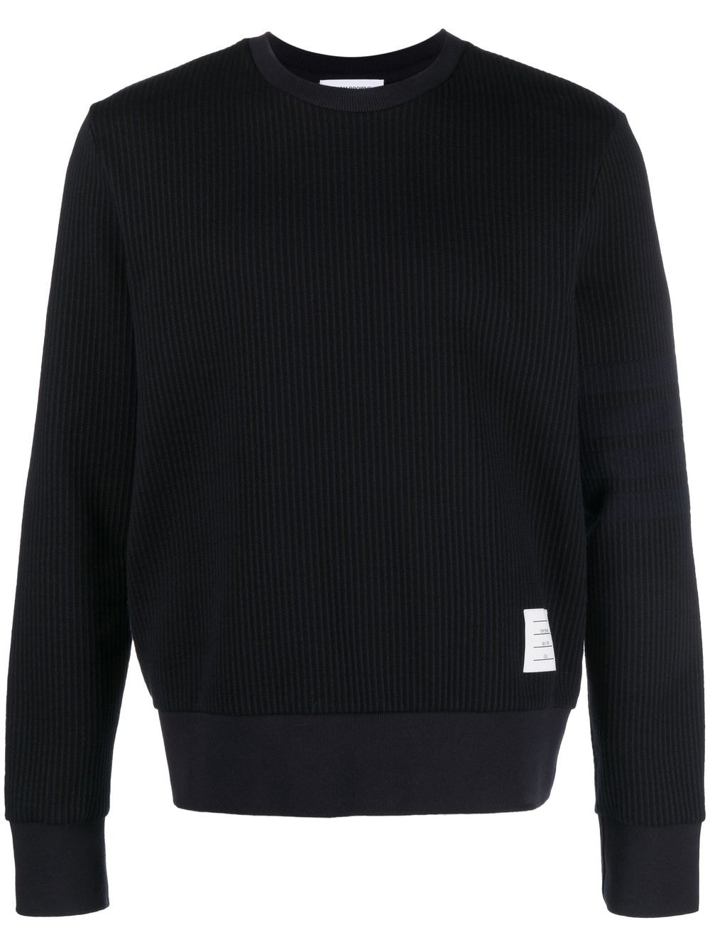 4-Bar seersucker sweatshirt Designed in a versatile navy colour, this crew neck sweatshirt is spun from soft cotton in Italy and elevated with a seersucker texture and 4-Bar patch at the front - a testament to Thom Browne's craftsmanship and penchant for signature house motifs. Made in Italy Composition Cotton 100% SIZE & FIT Model measurements Height 6 ft 2 in(1.88 m) Bust/Chest 36.61 in(93 cm) Hips 35.82 in(91 cm) Waist 27.95 in(71 cm) FittingInformation This piece fits true to size. We recommend you get your regular size Cut for a relaxed fit Made with a mid-weight fabric