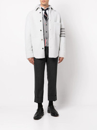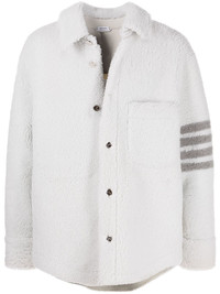 4-Bar shearling jacket Thom Browne is widely seen as one of the most influential designers of the past 10 years, because of his modern and timeless creations. Like this white shearling jacket, detailed with the usual 4-Bar stripe on the sleeve and constructed with a straight cut. Made in Italy Composition Sheepskin 100% SIZE & FIT Model measurements Height 6 ft 2 in(1.88 m) Bust/Chest 38.18 in(97 cm) Hips 37 in(94 cm) Waist 29.92 in(76 cm) Measurement CHEST 48.81 in(124 cm) LENGTH 33.07 in(84 cm) WAIST 51.18 in(130 cm) SLEEVE LENGTH 35.43 in(90 cm)