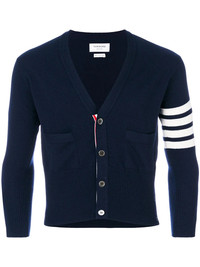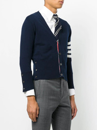 4-Bar Short Cashmere Cardigan Navy blue cashmere 4-Bar Short Cashmere Cardigan from Thom Browne. Made in United Kingdom Composition Cashmere 100% SIZE & FIT Measurement CHEST 37 in(94 cm) Shoulder Width 14.96 in(38 cm) Washing instructions Dry Clean Only