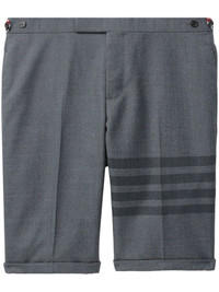 4-Bar wool-blend shorts Highlights - Grey - Wool-blend - Medium grey - Wool blend - Signature 4-bar stripe - Signature tricolour detail - Pressed crease - Low-rise - Concealed front fastening - Waist tabs - Two side slit pockets - Two rear button-fastening jetted pockets - Turn-up hem Made in Italy Composition Polyester 50%, Wool 50% SIZE & FIT Model measurements Height 6 ft 2 in(1.87 m) Bust/Chest 33.85 in(86 cm) Hips 35.82 in(91 cm) Waist 29.52 in(75 cm) Washing instructions Dry Clean Only