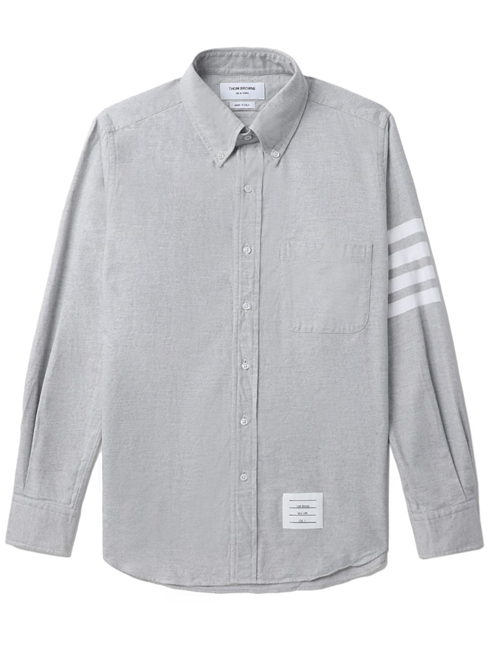 long-sleeve chambray shirt Highlights - Light grey - Cotton - Grey - Cotton - Chambray - Logo patch to the front - Stripe print sleeve - Classic collar - Front button fastening - Long sleeves - Buttoned cuffs - Curved hem Made in Italy Composition Cotton 100% SIZE & FIT Model measurements Height 6 ft 2 in(1.87 m) Bust/Chest 38.18 in(97 cm) Hips 36.61 in(93 cm) Waist 29.13 in(74 cm) Measurement CHEST 39.37 in(100 cm) LENGTH 29.52 in(75 cm) WAIST 37.79 in(96 cm) SLEEVE LENGTH 23.62 in(60 cm) Washing instructions Dry Clean Only