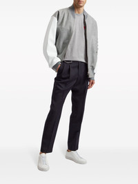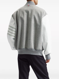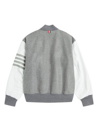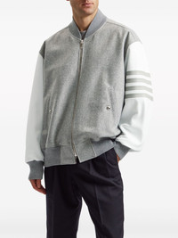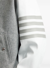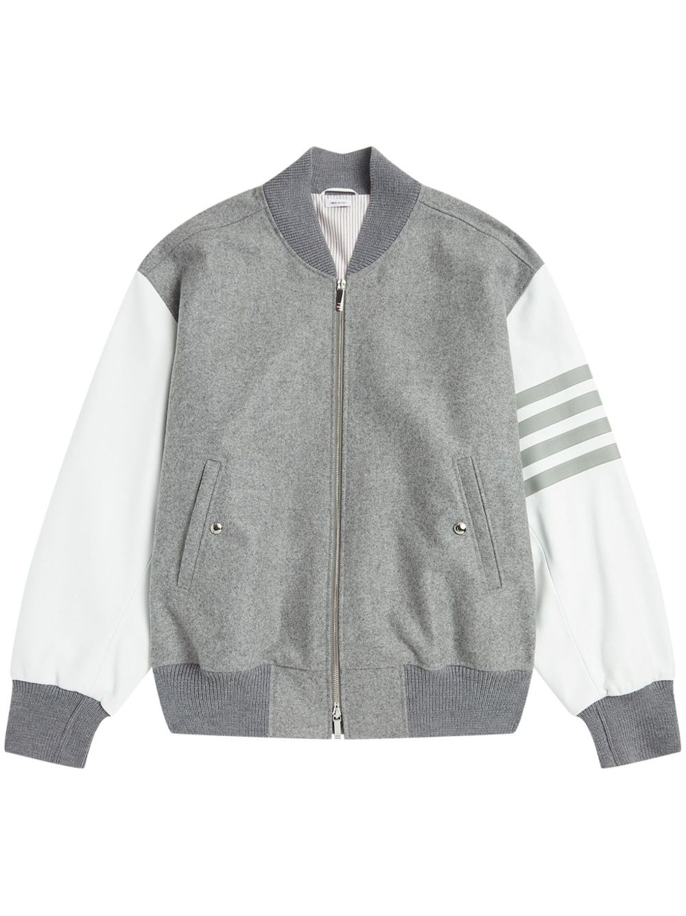 4-Bar stripe bomber jacket This grey cardigan is instantly recognisable as a creation from the Thom Browne brand with a signature 4-bar stripe adorning the sleeve. Made in Italy Composition Wool 60%, Lamb Skin 40% Washing instructions Read Manufacturer Guidelines