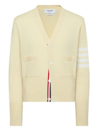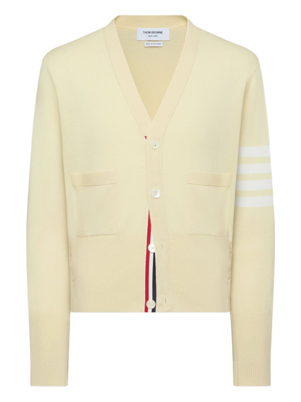 4-Bar stripe cardigan Highlights - Yellow - Signature 4-bar stripe - Signature grosgrain loop tab - Rwb stripe - V-neck - Button fastening - Ribbed cuffs - Patch pockets Made in United Kingdom Composition Cashmere 100% Washing instructions Read Manufacturer Guidelines