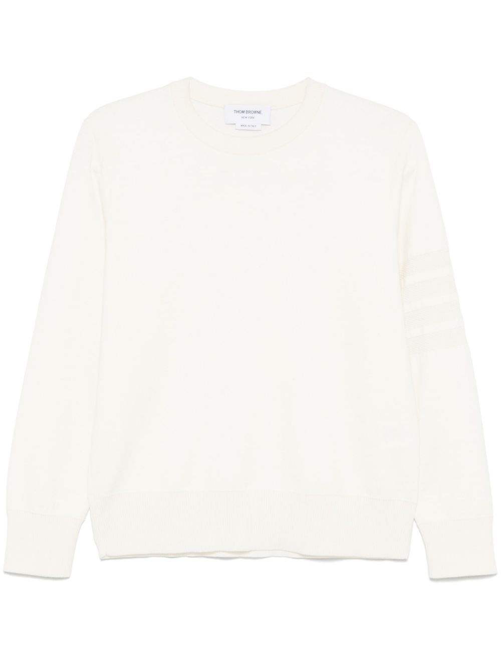 4-Bar stripe crew-neck sweter Highlights - White - Long sleeves - Ribbed cuffs and hem - Signature grosgrain loop tab Made in Italy Composition Virgin Wool 68%, Linen/Flax 20%, Cotton 9%, Polyamide 3% SIZE & FIT Model measurements Height 6 ft 2 in(1.87 m) Bust/Chest 37.79 in(96 cm) Hips 37.79 in(96 cm) Waist 30.31 in(77 cm) FittingInformation Designed for a relaxed fit, this piece allows for comfort and movement when worn The ribbed hem offers a close, comfortable fit Made with a midweight knit, this piece offers some stretch Washing instructions Hand Wash