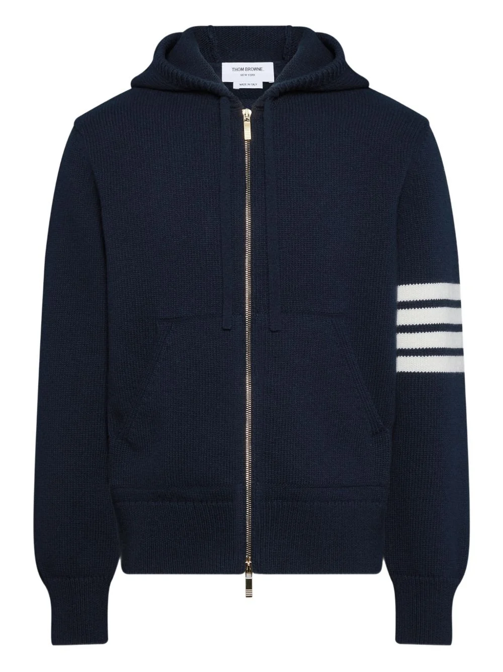 4-bar stripe-detail zip-up hoodie Highlights - Navy blue - 4-bar stripe - Zip fastening - Hood - Front pocket Made in Italy Composition Merino 100% Washing instructions Read Manufacturer Guidelines