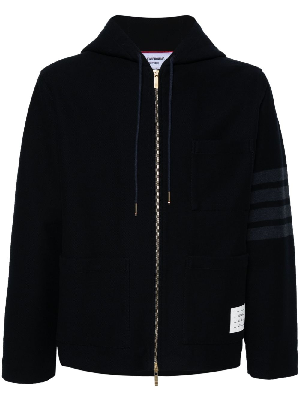 4 Bar-stripe hooded jacket Highlights - Navy blue - Twill weave - Signature grosgrain loop tab - Signature 4-bar stripe - Drawstring hood - Long sleeves - Chest patch pocket - Two side patch pockets - Logo patch to the front - Central rear vent - Front two-way zip fastening Made in Italy Composition Fabric 100% SIZE & FIT Model measurements Height 6 ft 1 in(1.86 m) Bust/Chest 37.4 in(95 cm) Hips 36.22 in(92 cm) Waist 29.52 in(75 cm) FittingInformation Designed for a relaxed fit, this piece allows for comfort and movement when worn The adjustable drawstring means that you can adjust this piece’s fit to suit your comfort and preference This piece fits true to size – take your usual size
