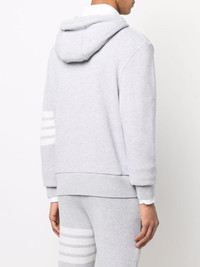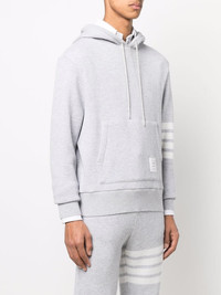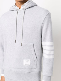 4-Bar stripe hoodie A key Thom Browne detail, the 4-Bar stripe embellishes the sleeve of this grey hoodie. In a contrasting white hue, it adds bold branding to the casual cashmere-blend piece. Made in Italy Composition Cashmere 50%, Wool 50% SIZE & FIT Model measurements Height 6 ft 2 in(1.87 m) Bust/Chest 38.18 in(97 cm) Hips 36.61 in(93 cm) Waist 29.13 in(74 cm) Measurement CHEST 40.94 in(104 cm) SLEEVE LENGTH 34.25 in(87 cm) Shoulder Width 18.89 in(48 cm) FittingInformation This piece fits true to size. We recommend you get your regular size Cut for a relaxed fit Made with a mid-weight fabric