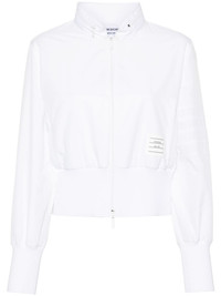 4-Bar stripe jacket Highlights - White - Ripstop texture - Signature 4-bar stripe - Band collar - Concealed hood - Long sleeves - Ribbed cuffs and hem - Logo tag - Two side zip-fastening pockets - Front two-way zip fastening - Mesh lining Made in Italy Composition Polyester 100% SIZE & FIT Model measurements Height 5 ft 9 in(1.74 m) Bust/Chest 34.64 in(88 cm) Hips 36.61 in(93 cm) Waist 26.37 in(67 cm) FittingInformation Designed for a slim fit that sits just away from the body offering a close yet comfortable fit The ribbed hem offers a close, comfortable fit Made from a midweight fabric This piece fits true to size – take your usual size