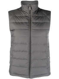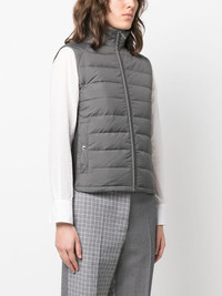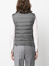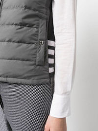 4-Bar Stripe padded gilet dark grey goose down padded design signature 4-Bar stripe front zip fastening two press-stud fastening side pockets high neck sleeveless straight hem Made in Italy Composition Outer: Polyester 100%, Wool 48%, Acrylic 47%, Polyamide 3%, Spandex/Elastane 2% Lining: Polyester 100%, Goose Down 100% SIZE & FIT Model measurements Height 5 ft 10 in(1.79 m) Bust/Chest 32.67 in(83 cm) Hips 34.25 in(87 cm) Waist 24.4 in(62 cm) FittingInformation This piece fits true to size. We recommend you get your regular size Cut for a slim fit Made with a mid-weight non-stretch fabric Washing instructions Dry Clean Only