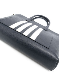 4-Bar stripe pebbled-leather briefcase Thom Browne combines key house codes on this pebbled leather briefcase, creating a branding-focused piece. The navy blue design is detailed with the signature 4-Bar stripe to the front which appears alongside the iconic RWB stripe grosgrain loop tab. Highlights - Navy blue - Calf leather - Pebbled texture - Signature 4-bar stripe - Rwb stripe - Signature grosgrain loop tab - Slip pocket to the front - Two top handles - Detachable shoulder strap - Top zip fastening - Main compartment Made in Italy Composition Outer: Calf Leather 100% Lining: Polyester 100% SIZE & FIT Model measurements Height 6 ft 2 in(1.87 m) Bust/Chest 36.41 in(92.5 cm) Hips 37 in(94 cm) Waist 29.52 in(75 cm) Measurement DEPTH 2.75 in(7 cm) HANDLE 5.51 in(14 cm) HEIGHT 9.84 in(25 cm) STRAP 22.83 in(58 cm) WIDTH 14.17 in(36 cm)