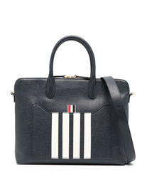 4-Bar stripe pebbled-leather briefcase Thom Browne combines key house codes on this pebbled leather briefcase, creating a branding-focused piece. The navy blue design is detailed with the signature 4-Bar stripe to the front which appears alongside the iconic RWB stripe grosgrain loop tab. Highlights - Navy blue - Calf leather - Pebbled texture - Signature 4-bar stripe - Rwb stripe - Signature grosgrain loop tab - Slip pocket to the front - Two top handles - Detachable shoulder strap - Top zip fastening - Main compartment Made in Italy Composition Outer: Calf Leather 100% Lining: Polyester 100% SIZE & FIT Model measurements Height 6 ft 2 in(1.87 m) Bust/Chest 36.41 in(92.5 cm) Hips 37 in(94 cm) Waist 29.52 in(75 cm) Measurement DEPTH 2.75 in(7 cm) HANDLE 5.51 in(14 cm) HEIGHT 9.84 in(25 cm) STRAP 22.83 in(58 cm) WIDTH 14.17 in(36 cm)