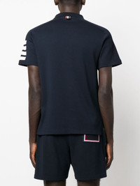 4-Bar Stripe polo shirt Instantly recognisable as Thom Browne by the 4-Bar Stripe at the arm, this polo shirt is constructed from sophisticated materials and has a sleek silhouette that reflects the brand's tailored approach to garment construction. Highlights - Navy blue - Cotton - Signature 4-bar stripe - Classic collar - Short sleeves - Front button placket Made in Italy Composition Outer: Cotton 100% SIZE & FIT Model measurements Height 6 ft 2 in(1.87 m) Bust/Chest 36.41 in(92.5 cm) Hips 37 in(94 cm) Waist 29.52 in(75 cm) FittingInformation Designed for a relaxed fit, this piece allows for comfort and movement when worn Made from a midweight non-stretch fabric, this piece offers minimal elasticity when worn This piece fits true to size – take your usual size
